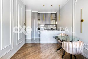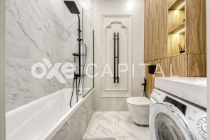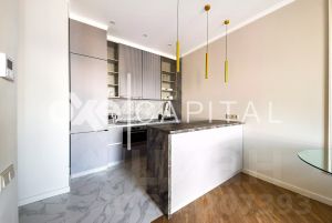 Просторная кухня-гостиная с панорамными окнами и захватывающими видами на город, изолированная спальня с комфортной кроватью и вместительной гардеробной. Санузел, выполненный из высококачественных материалов.