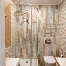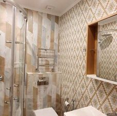 Для отделки квартиры использованы качественные материалы, найдены красивые дизайнерские решения. Колористика выдержана в теплых пастельных тонах, что создает настроение домашнего уюта, отдыха. На полу в кухне, прихожей, санузлах, применен керамогранит, имитирующий деревянный паркет, что абсолютно соответствует общей концепции.
