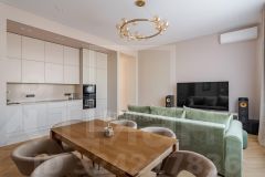 В квартире: С мебелью, Парковка, Посудомоечная машина, Стиральная машина, Бойлер, Душевая кабина, Теплые полы, Кондиционер, Видеонаблюдение, Охрана, Балкон, Видовая квартира, Можно с детьми, Интерьер в современном стиле, Гардеробная комната, Лифт, Ремонт - дизайнерский, Кухонная мебель, Окна на улицу, Окна во двор