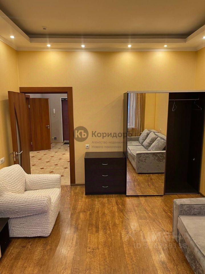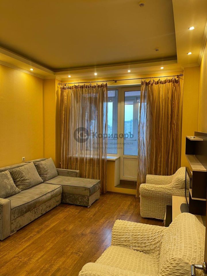 Светлая кухня с современным гарнитуром, встроенной техникой и вместительным холодильником. Удобное рабочее пространство для тех, кто любит готовить. Просторная гостиная с мягкой мебелью, большим окном и выходом на утеплённую лоджию. Здесь комфортно отдыхать, работать или принимать гостей.