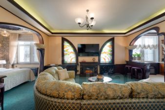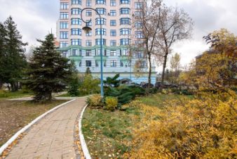 В квартире 2 больших окна в кухне и спальне и два фигурных окна с витражным остеклением в гостиной. Вид из всех окон выходит на ул.Маршала Соколовского.