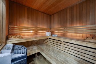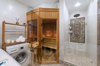 В квартире сделана зона СПА, с сауной и бассейном, а также тропический душ. Теплые полы в зоне кухни.