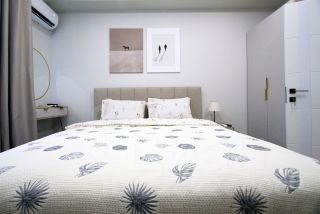 2 большие двуспальные кровати с хлопковым постельным бельем очень приятным к телу.