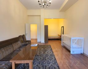 -Кухня-12м², комната-23м², Общая площадь-43м². Высота потолка 4,2 м.. Вся необходимая мебель(кровать, диван, кух. гарнитур), техника(варочная панель, дух. шкаф с доп.функцией свч-печи, кондиционер, стир. машина).