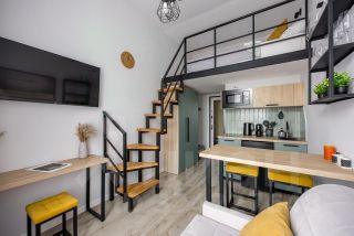 - Площадь студии - 15 м² + 4 м² второго яруса