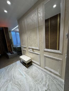 В квартире вся Мебель из массива дерева стеновые панели из натурального кавказского дуба. В том числе кухня и шкафы, не мдф ,а именно натуральное дерево.