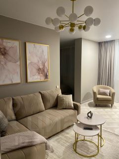 В квартире выполнен качественный дизайнерский ремонт. Все материалы и мебель подобраны с учётом функциональности и стиля. Установлена современная бытовая техника, что делает проживание комфортным. Санузел совмещённый, оборудован всем необходимым для вашего удобства.