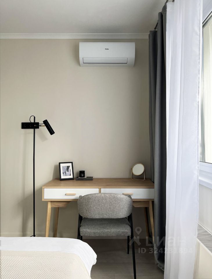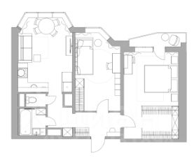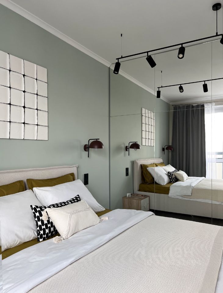 В квартире есть вся необходимая мебель: кухонный гарнитур; обеденный стол и стулья из натурального дерева; диван-кровать, односпальная и двуспальная большая кровать с нишей для хранения вещей; 2 рабочих стола, стеллаж, прикроватные тумбы, светильники и много других дизайнерских деталей интерьера.