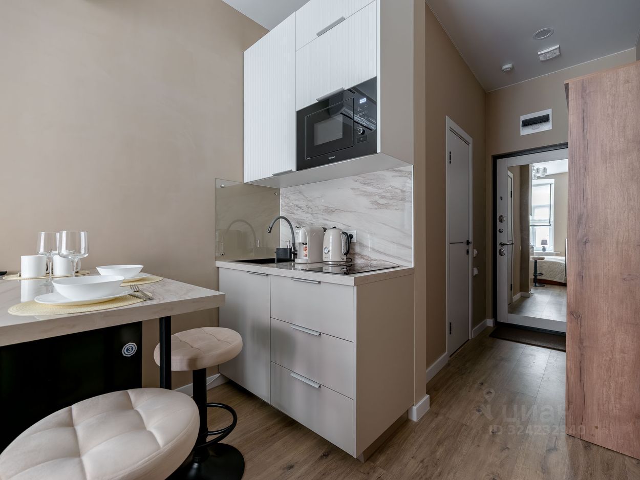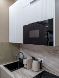 • Полностью оборудованная кухня: варочная панель, СВЧ, чайник, мини-холодильник, посуда, столовые приборы.