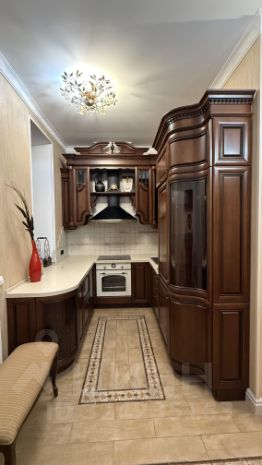 В отделке квартиры использованы высококачественные натуральные материалы премиум класса. Мебель и люстры - Италия. Люстра в гостиной с кристаллами Сваровски. Настоящий дровяной камин (регулярно обслуживается).