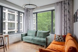 Погрузитесь в атмосферу комфорта и премиального уровня — перед вами одни из самых стильных апартаментов в данной локации. Две изолированные комнаты, современный дизайн и качественная отделка создают ощущение проживания в пятизвёздочном отеле. Огромная двуспальная кровать 180200, 2 дивана (раскладывается 1), письменный стол — здесь всё продумано для полноценного отдыха и работы. Апартаменты идеально подойдут как для семьи с ребенком, так и для делового человека с необходимостью в зонировании пространства.