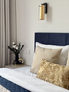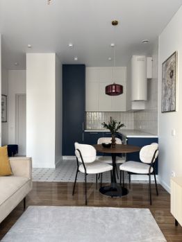 Современный стильный эргономичный интерьер с французскими нотками, высокие потолки (2,8 м), полная комплектация бытовой техникой и необходимыми аксессуарами для комфортной жизни (кондиционер, телевизор, холодильник, посудомоечная машина, духовка, вытяжка, стиральная машина, встроенный фильтр для воды, система автоматической защиты от протечек, водонагреватель, теплые полы в зоне прихожей, умные выключатели с Алисой, регулируемые приточные клапаны для постоянного притока свежего воздуха, двуспальная кровать 160 см, большое количество мест для хранения). Вся мебель и техника новые.