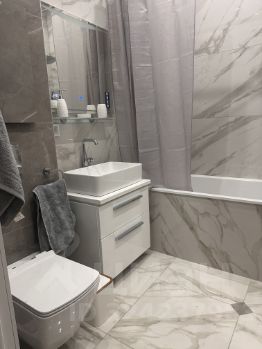Квартира с ремонтом премиум-класса, где использовались дорогостоящие материалы, немецкая сантехника GROHE, теплые полы с управлением. Высокие потолки добавляют пространства, а панорамное остекление наполняет его светом и воздухом, установлены электрокарнизы для удобства.