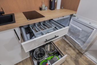 - зона кухни с набором посуды для приготовления ваших кулинарных блюд. В этом вам помогут плита, СВЧ, чайник, холодильник.