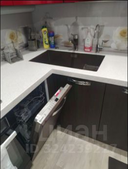 На кухне гарнитур, производства Стильные кухни. Есть всякий необходимая бытовая техника: посудомоечная машина, вытяжка, микроволновая печь, электрический чайник, газовая плита, духовой шкаф, холодильник.