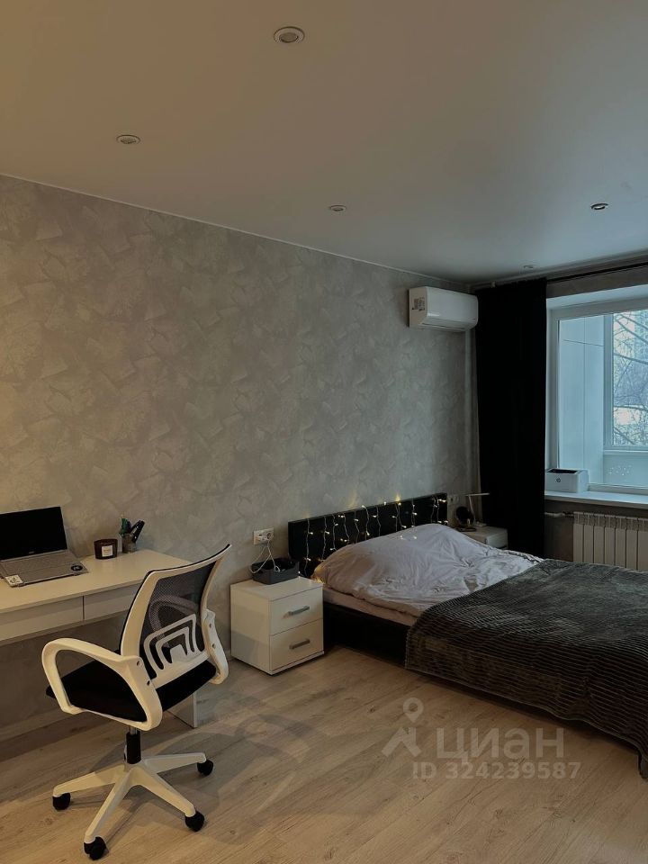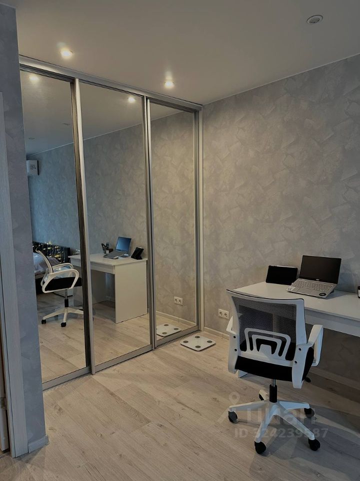 В квартире хороший ремонт. Кухня: стол и стулья, кухонный гарнитур, микроволновая печь, духовой шкаф и плита (газ). Комната: кровать с матрасом, две тумбочки и шкаф купе. Санузел совмещенный, оборудован ванной и стиральной машиной. Хорошая лоджия для отдыха на свежем воздухе