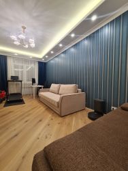 Кваpтиpа полностью укомплектована всей необходимой мебелью и техникой для комфортного проживания. Использованы качественные натуральные материалы, сантехника и вся техника от лучших производителей. Имеется бойлер. Кондиционеры. Теплый пол.