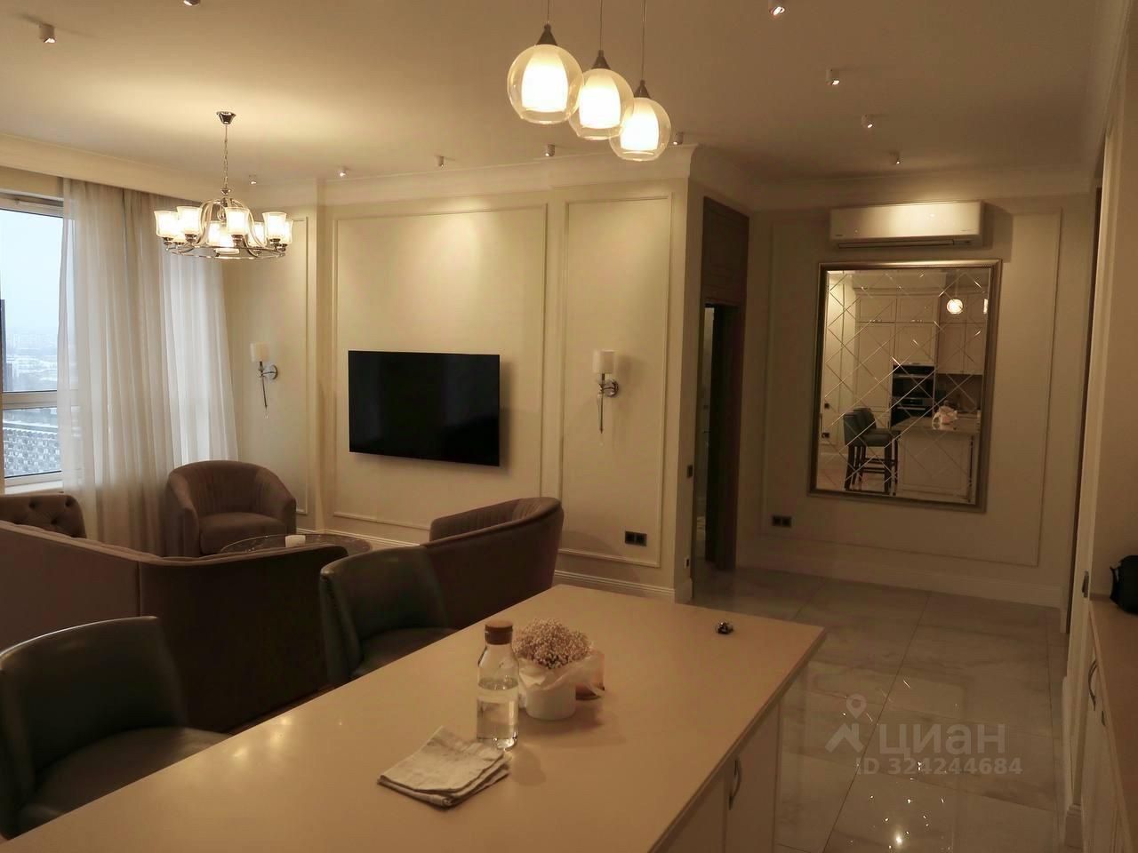 Предлагаем вам арендовать стильные апартаменты на Шелепихинской набережной, на видовом высоком этаже современного здания. Общая площадь составляет 85 кв. м, жилая площадь — 40 кв. м, а просторная кухня занимает 30 кв. м. Высокие потолки — 3,2 метра — создают ощущение простора и свободы. Апартаменты находятся всего в 12 минутах пешком от станции метро Шелепиха.