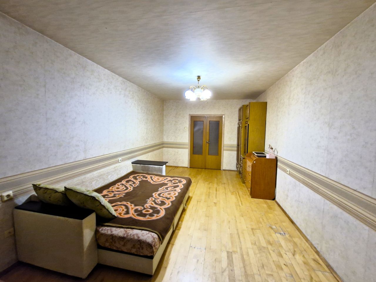 Комната в 3-комнатной квартире. Комнаты изолированные. Комната и квартира в обычном жилом состоянии. В комнате диван, шкаф, комод. На кухне холодильник и стиральная машина - общего пользования.