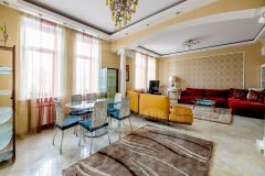ID 38597. Вашему вниманию предлагается шикарная трехкомнатная квартира в самом престижном районе города Москвы. Квартира полностью мебелирована дорогой итальянской мебелью и оснащена современной бытовой техникой. В гостиной: четыре окна- выходят на Новый Арбат, два дивана, один из них можно использовать при необходимости в качестве гостевого спального места, обеденный стол со стульями, четырехстворчатый шкаф, телевизор плазма, стеклянный журнальный стол, кондиционер, точечная двухуровневая потолочная подсветка. Имеется оборудованная гардеробная комната: в главной спальне окно выходит на Новинский Бульвар, диван раскладывающийся, торшер, шкаф платяной, телевизор плазма. Вторая спальня: установлены тройные шумонепроницаемые тройные стеклопакеты.На балконе установлено панорамное остекление внешние шторы блекауты-жалюзи! Развитая инфраструктура района:в пешей доступности находятся Смоленский пассаж, Новинский пассаж, Лотте Плаза, представительства международных компаний, магазины, рестораны.