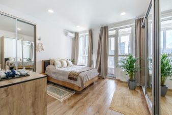 Прекрасное оснащение - 3!! шкафа-купе, которые оставляют достаточно пространства, хорошая мебель и бытовая техника - все на фото. Фото соответствуют действительности.