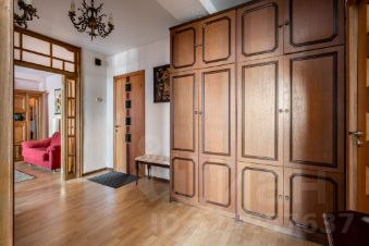 Стиральная машина расположена в прихожей, спрятана в шкафу.