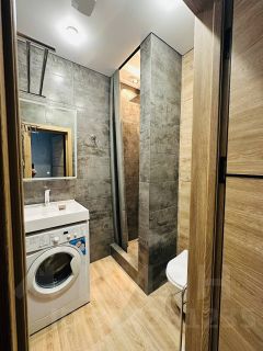 Просторный санузел с душевой кабиной. В ванной комнате установлена стиральная машина. Квартира оснащена кондиционером.