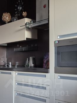-просторная кухня-гостиная с полноценной кухней оснащенная вместительным гарнитуром и современной техникой, включая микроволновую печь и холодильник, удобный диван;