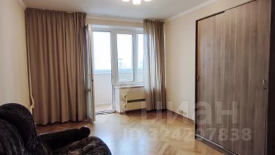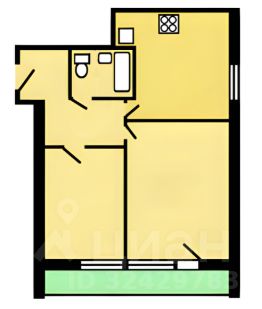 В зале угловой диван, раскладывается в спальное место. Платяной шкаф. Есть пространство для рабочего стола или телевизора на тумбе. Выход на застеклённую лоджию.
