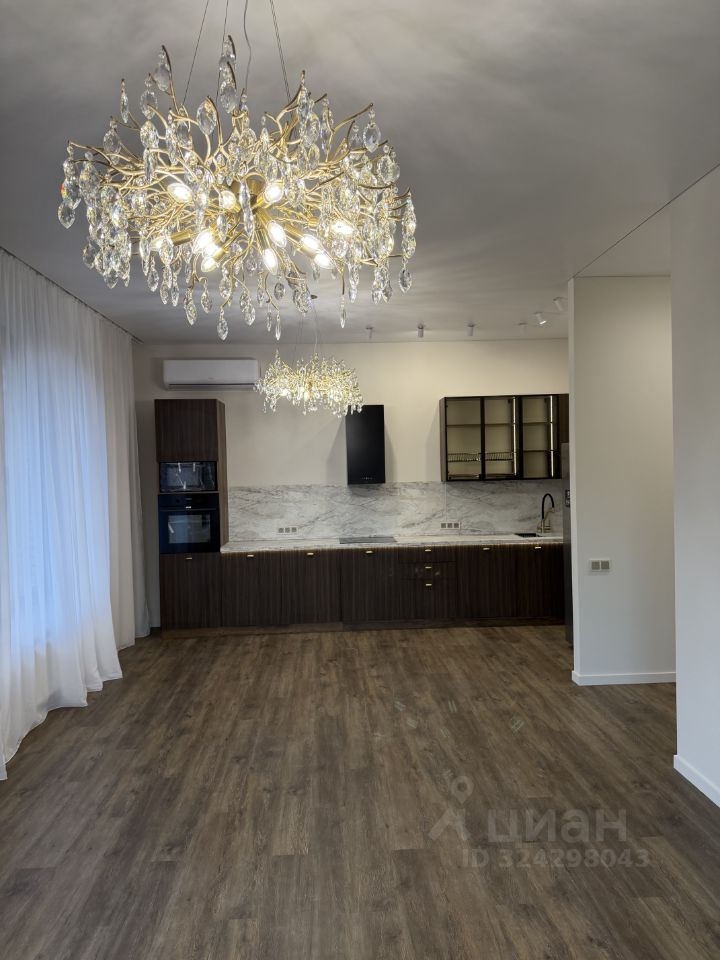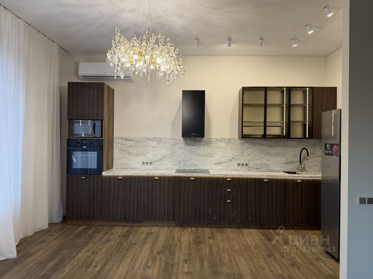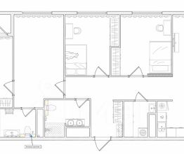 Семь арочных окон наполняют квартиру светом, обеспечивая естественное освещение в каждой комнате. Достоинством планировки является большая кухня-гостиная площадью 35 кв.м., а также наличие четырех отдельных комнат. Предусмотрены два санузла и постирочная зона с местом для хранения.