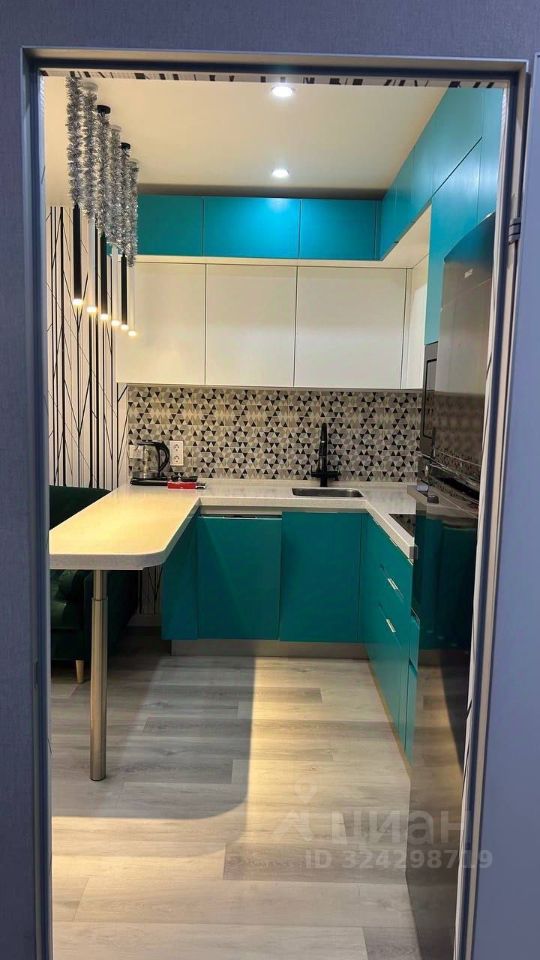 Квартира с авторским ремонтом в современном стиле, выполненным для себя с продуманной эргономикой и качественными материалами. Мебель изготовлена на заказ: шкафы Mr.Doors, кухня Стильные кухни с эмалевыми фасадами и каменной столешницей. Встроенная техника: индукционная варочная панель, духовой шкаф, СВЧ, посудомойка, новый холодильник, вытяжка и LED-подсветка, а также телевизор.