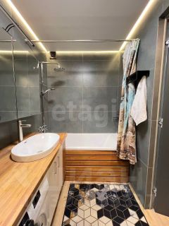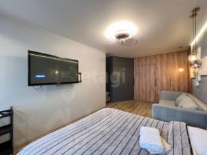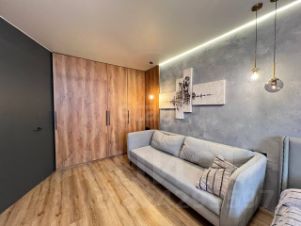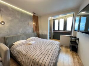 Квартира с дизайнерским ремонтом. Из мебели есть все необходимое: кровать, два больших дивана, обеденный стол со стульями, большой шкаф для хранения вещей. С/у совмещеный. Объединенные лоджии, оборудованные теплыми полами, увеличивают пространство и общую полезную площадь квартиры.