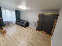 В квартире вся новая мебель : шкаф - купе , модуль хранения , ТВ , диван который разбирается и получается полноценное 2-х спальное место , новые портьеры , стеклопакеты новые , лоджия не застеклена , окна во двор , тихо . Много зелени во дворе .