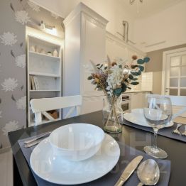• Полностью оборудованная кухня: Плита с духовкой, холодильник, микроволновая печь, чайник и посудомоечная машина, . Полный набор посуды и кухонных принадлежностей, а также уютный обеденный стол для приятных семейных завтраков и романтических ужинов.
