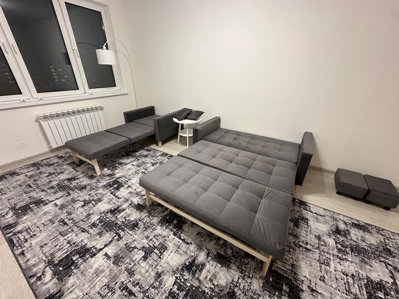 В спальне и гостиной шторы блэкаут, два раскладных дивана и двуспальная кровать с ортопедическим матрасом