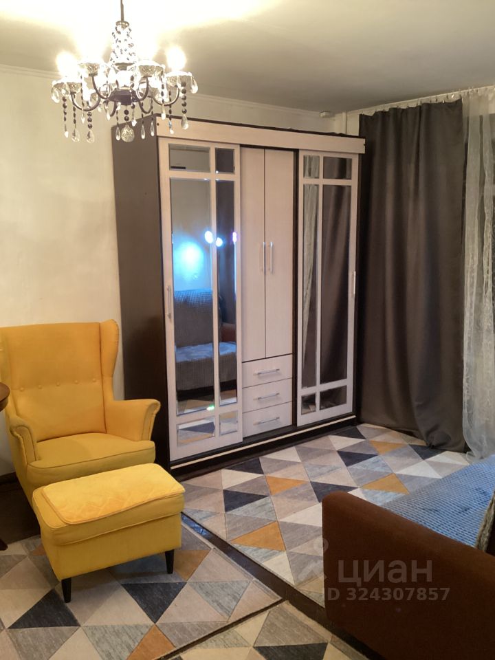 Общая площадь составляет 32 кв. м, жилая площадь — 22 кв. м, кухня — 6 кв. м. Высота потолков — 2.6 метра. Окна выходят во двор, поэтому вас не будут беспокоить шумные улицы.