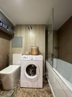 Квартира оформлена в современном дизайнерском стиле. В комнатах и на кухне есть вся необходимая мебель, а на каждом этаже есть свой санузел, что невероятно удобно. Из бытовой техники в вашем распоряжении кондиционер, холодильник, посудомоечная машина, телевизор и стиральная машина. В квартире два совмещённых санузла, в одном из которых установлена ванна, а в другом душевая кабина. Окна выходят во двор, что обеспечивает тишину и уют.
