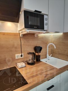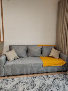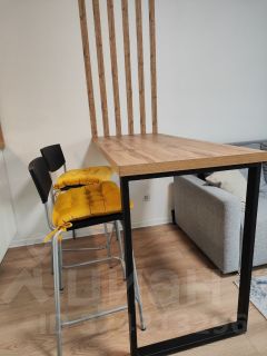 Квартира выполнена в дизайнерском стиле с качественным ремонтом. В студии есть вся необходимая мебель: кровать, шкаф, обеденный стол и стулья. Кухня оборудована современной техникой: холодильник, плита и вытяжка. Ванная комната оснащена душевой кабиной, а также стиральной машиной. В квартире установлен кондиционер и телевизор, подключен интернет — все для комфортного проживания.