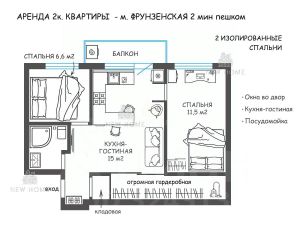 АРЕНДА 2 к. КВАРТИРЫ - м. ФРУНЗЕНСКАЯ 2 мин пешком !