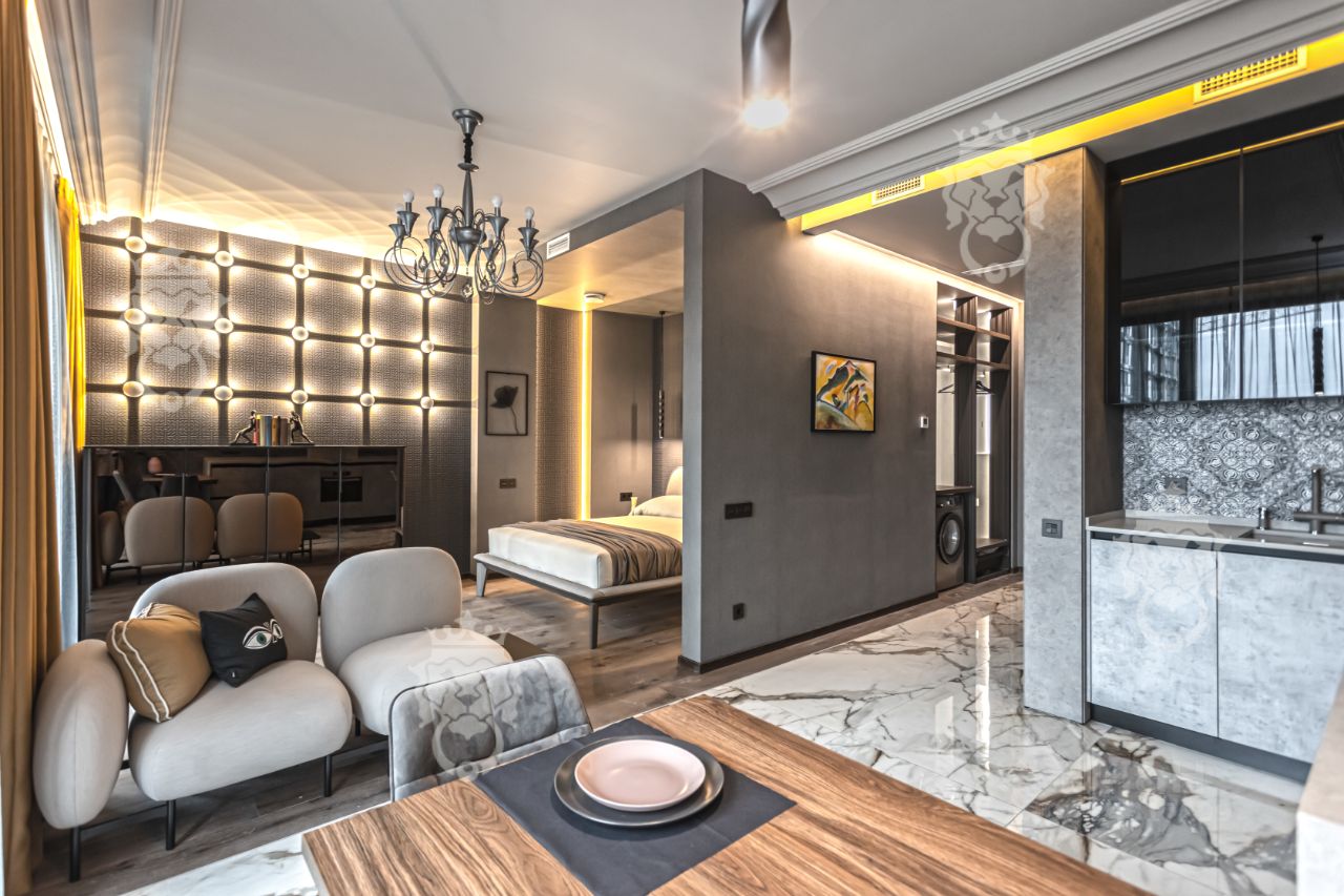 ID 516597. Без животных. Предлагается в аренду стильный апартамент в жилом комплексе премиум класса Прайм парк. Дизайнерский ремонт выполнен в изысканном стиле эклектика. Общее пространство распределено на несколько уютных зон: кухню, оборудованную современной бытовой техникой, гостевую с удобной мягкой мебелью и спальню, оснащенную всем необходимым для комфорта. Санузел с душевой кабиной, оснащенной системой тропического душа. Встроенный вместительный шкаф. Для жителей комплекса доступна круглосуточная система консьерж-сервиса.