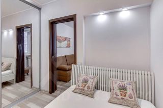 Квартира с евроремонтом, полностью меблирована и готова к проживанию. В гостиной и спальне есть все необходимое для комфортной жизни. Кухня площадью 8 кв. м. оборудована современной техникой: холодильник, посудомоечная машина, кондиционер, телевизор. В ванной комнате установлена душевая кабина и стиральная машина. Окна выходят во двор, поэтому в квартире тихо и спокойно.