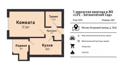 Лучшее предложение однокомнатной квартиры в новом жилом комплексе бизнес-класса ЖК "LIFE-Ботанический сад".