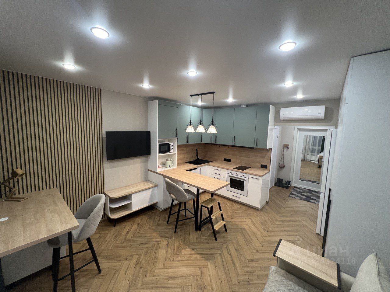 1) кухонная техника включает посудомойку уменьшенного объёма, что очень удобно для 1-2 человек