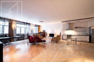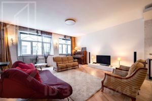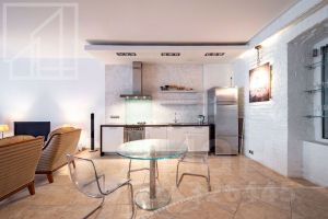 Лот 540064. Бонус коллегам. Предлагается стильная двухкомнатная квартира в доме "Староконюшенный, 33" на Старом Арбате. Выполнен дизайнерский ремонт. В отделке использовано натуральное дерево, элементы из тёмного металла, белый и красный кирпич. Квартира полностью укомплектована мебелью и бытовой техникой.