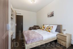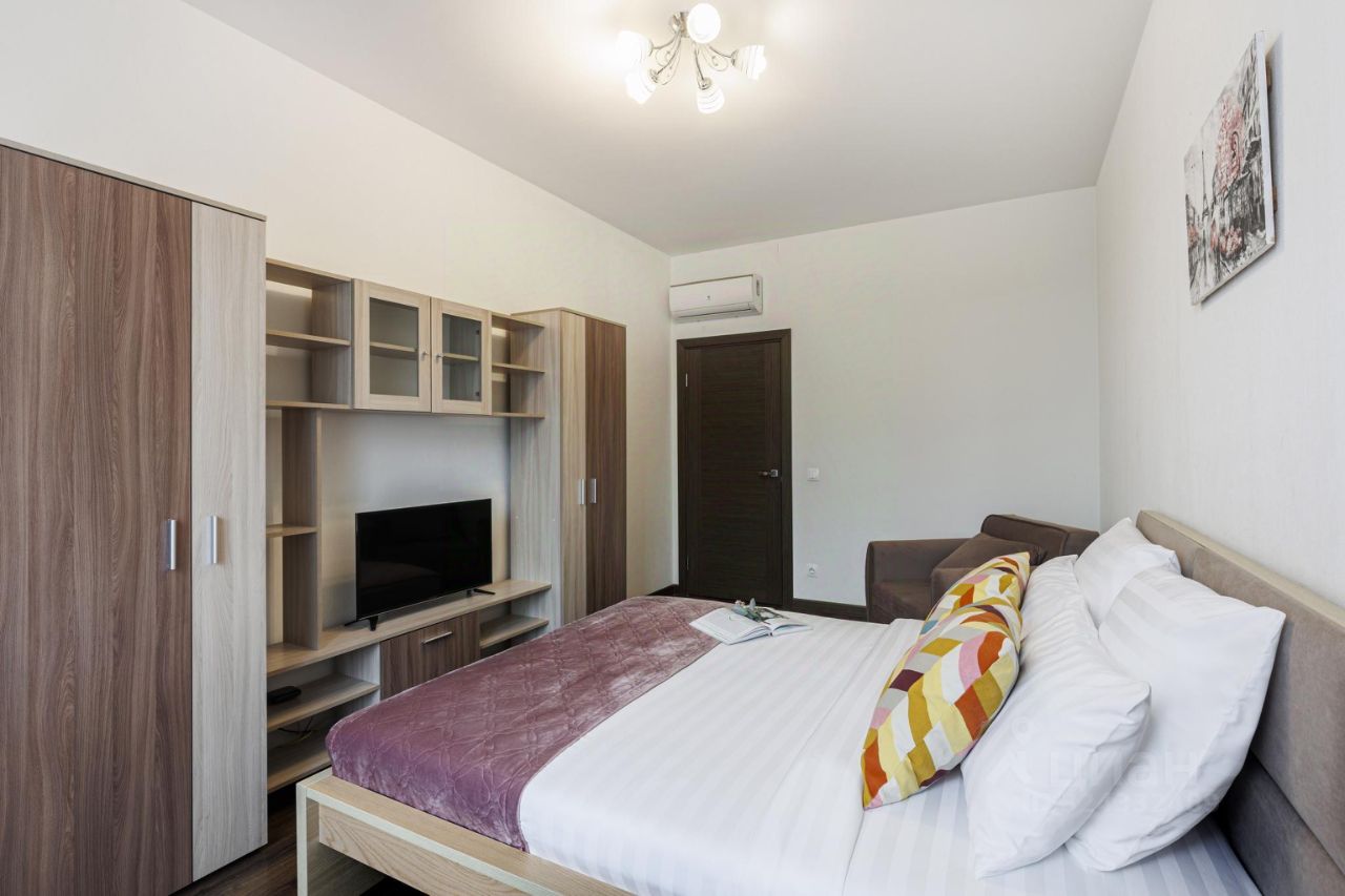 Однокомнатные апартаменты подойдут для возможного размещения 3 гостей. Спальные места: двуспальная кровать 160*200 см с ортопедическим матрасом и кресло-диван в качестве дополнительного места. В апартаментах есть все необходимое для комфортного проживания: телевизор, Wi-Fi, полностью оборудованная кухня с посудой для готовки и принятия пищи, духовой шкаф, кондиционер, фен. Постельное белье, полотенца и средства для гигиены предоставляются. Квартира расположена на 12 этаже.