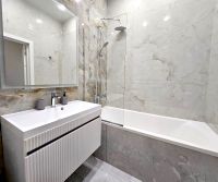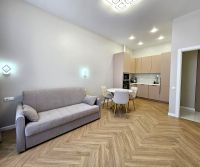 Укомплектована абсолютно всей необходимой мебелью и техникой, в том числе посудомойкой и кондиционером.