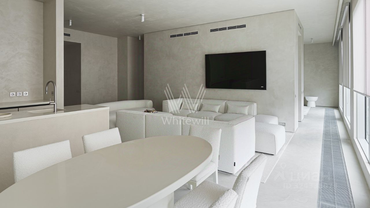 Бонус партнёрам 50%. Квартира с 1 спальней площадью 115 м² на 3 этаже комплекса премиум-класса "Четыре ветра". В минималистичном интерьере использован микроцемент в приятных пастельных тонах, создающий уютную и светлую атмосферу в квартире. Благодаря панорамным окнам, открывающим виды на оживлённый город, помещения наполнены солнечным светом и теплом. Здесь каждая деталь продумана для создания пространства, где царит тихая роскошь. Обтекаемые формы мебели добавляют мягкости строгой геометрии комнат. Планировка включает гостиную с кухонной и обеденной зонами, спальню, 2 гардеробные, коридор, 2 санузла с системой подогрева полов и постирочную. Предусмотрено семейное машино-место на 2 автомобиля в подземном паркинге за дополнительную плату.