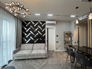 Ремонт произведен с использованием качественных дорогостоящих материалов по дизайн проекту, шумоизоляция по всему периметру квартиры включая пол и потолок, продумано все до мелочей для комфортного проживания.Функциональная планировка: две изолированные комнаты, кухня/гостиная, гардеробная, большой с/у с ванной, душем и постирочной. Вся мебель - Италия, техника Asko, установлен надежный противовзломный и противопожарный финский сейф, система кондиционирования и приточно-вытяжная вентиляция, шторы с электроприводом, качественная система водоочистки, теплый пол в с/у. Кухня полностью укомплектована техникой: варочная панель, духовой шкаф/микроволновая печь, посудомоечная машина, холодильник. Квартира сделана с заботой о Вашем комфорте, добро пожаловать!