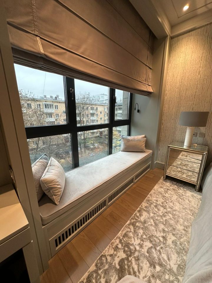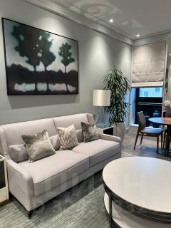Функциональная планировка в формате евро-двушки: большая кухня-гостиная с раскладывающимся диваном, просторная спальная комната с рабочим местом, 2 санузла с душевыми кабинами, много систем хранения для одежды и обуви, автоматическая система кондиционирования воздуха. Панорамные окна в пол, высота потолков 3,1 метра. В квартире уютно, светло и спокойно.