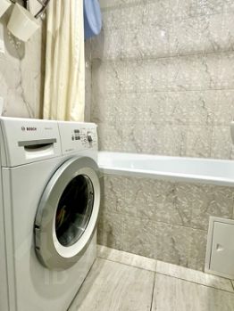 Квартира с качественным евроремонтом, оснащена всей необходимой мебелью и бытовой техникой. На кухне есть холодильник и стиральная машина. В комнате и на кухне установлена современная мебель, поэтому можно сразу заезжать и жить. Санузел совмещенный, в ванной есть полноценная ванна. Проведен интернет, что обеспечивает возможность работать и отдыхать без перебоев.